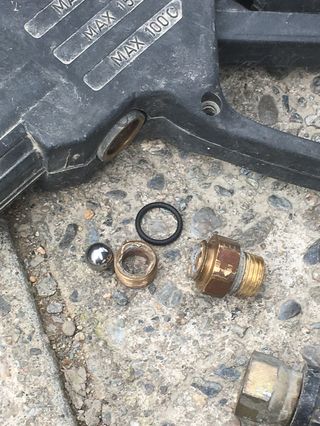逆止弁用のボールは水垢とサビを綺麗に落として再利用。