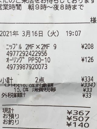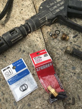 ガン側にはOリングがついており、劣化も少なそうだったが、結構肝心な部分なので、水道用のΦ10のOリングも購入。