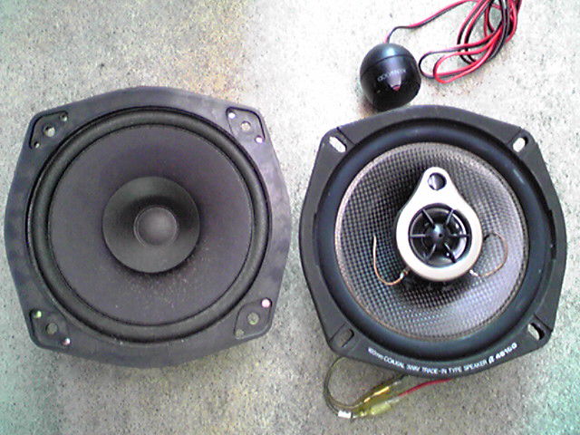 ・・・で、左が純正フルレンジ、右がコアキシャル。KENWOODのツィーターも出てきたので一緒に取り付け。