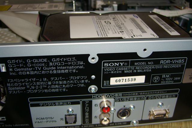 SONY RDR-VH85のHDD換装 その1 で報告したように無事HDDの換装を終えたわけだが、ここに来て問題発生!