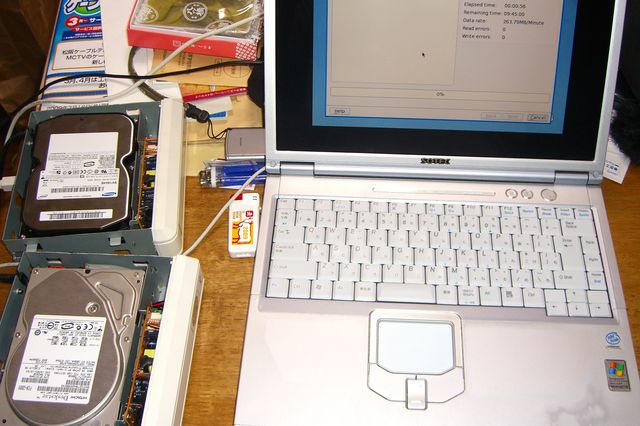 帰宅してからは、先日カミさんがHDDレコーダの録画データを全部消してしまったので、分解してHDD取り出してデータサルベージ中。