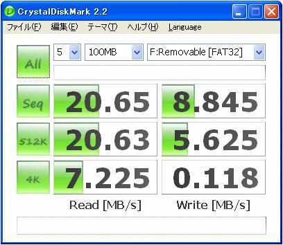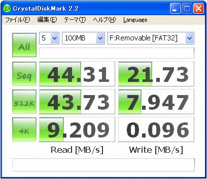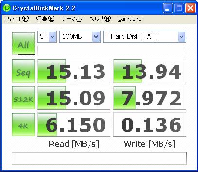 ExtremeⅣにおいては読み出し/書き込み45MB/sとうたっているが、CFアダプタの性能なのか、PCカードスロットの性能なのかボトルネックが存在していると思われる結果となった。