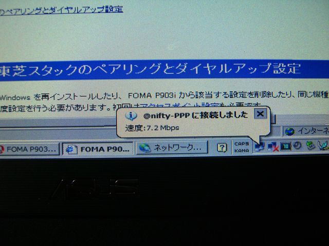 接続できたときの表示は「7.2Mbpsで接続」