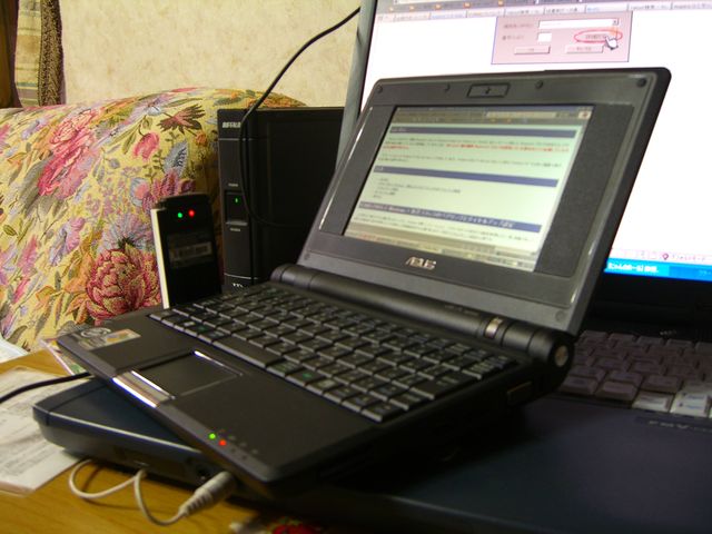 winを起動している間、EeePCを起動した後、A2502をUSBポートに刺すと電源が落ちる事例について聞いてみた。いくつかのPCでそんなことがあるらしいが、EeePCでは初めて聞いたとのことでだった。