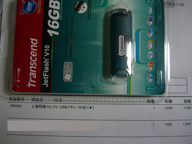 先日16GBのUSBフラッシュメモリを発注。約¥8.5K(送料込み)