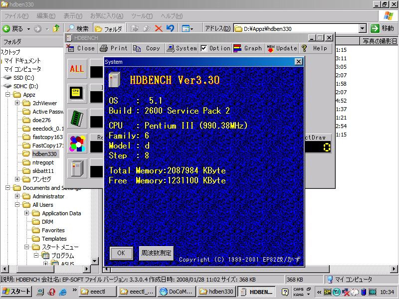 HDBENCHで周波数測定をしてみると、ほぼ1GHz。