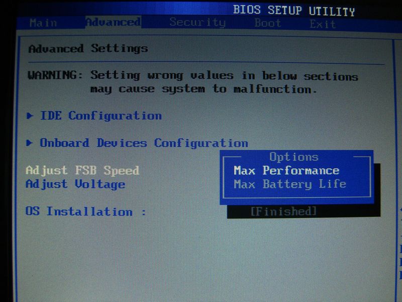 そんでもって、boot時は900MHzで立ち上がってもらって何となく早くなった気分を味わって、Windowsにログインしてからは630MHzではなく、600MHzか500MHzくらいにダウンクロックするようにしてみた。