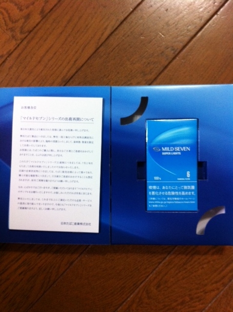 震災から5ヶ月・・・一時期は入手困難だった愛用銘柄も完全復活ってことで、JTからその旨の連絡とサンプルが送られてきた。