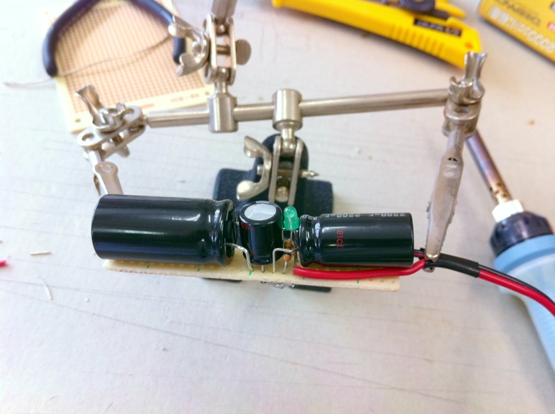 職場近くのパーツ屋でコンデンサ買ってきて、並列回路組んだだけ・・