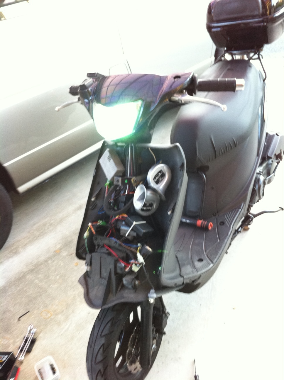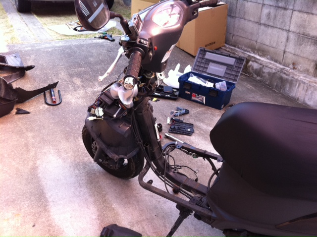 純正のハロゲンは暗く、不満があったのと、これからの季節暗くなるのも早くなるし・・・ってことでHIDキット(SOLAM HID 25W)を買ってあったので、気候的にもちょうどいいということで取り付けることにした。