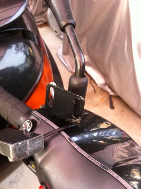 とは言ってもあまり空きがない状態なので、バックミラーにLアングルのステーをかます。