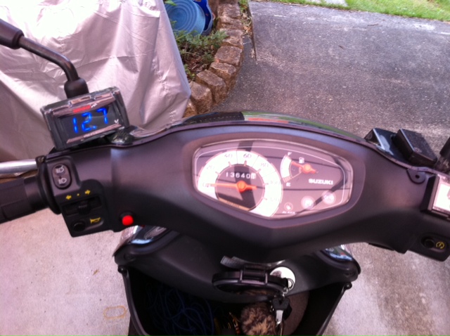 バーハン用やミラーに取り付ける時のステートかも付いているのだが、アドレスの場合は何となくしっくりこないということで、カウルに直付け。