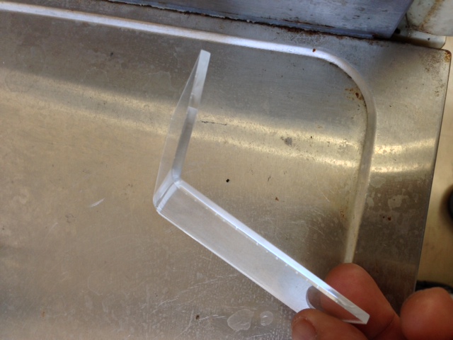 3mmのアクリルをカットしたのはいいが、一枚板のままではどうにも付けられないことから、2ピースにして取り付けステーのような物を作るか、1枚板のまま曲げるか・・・