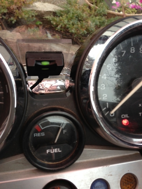 さんざん悩んだあげくLEDが視認できる場所ということで、スピードメータとタコメータの谷間に取り付けることにした