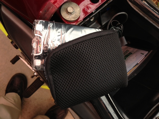 ・・・が、程良い大きさの箱が手に入らなかったので、seriaで売っているスマホ用のソフトポーチに入れてみることにした